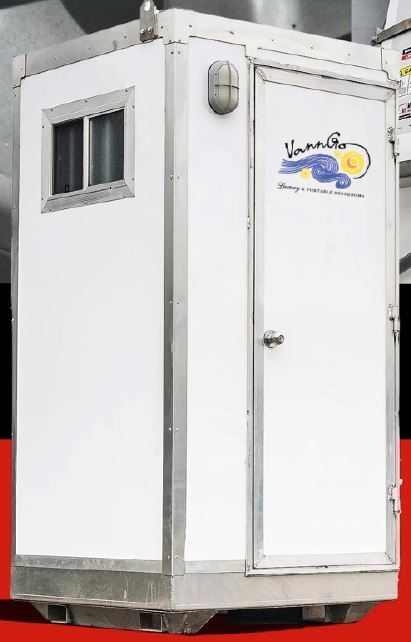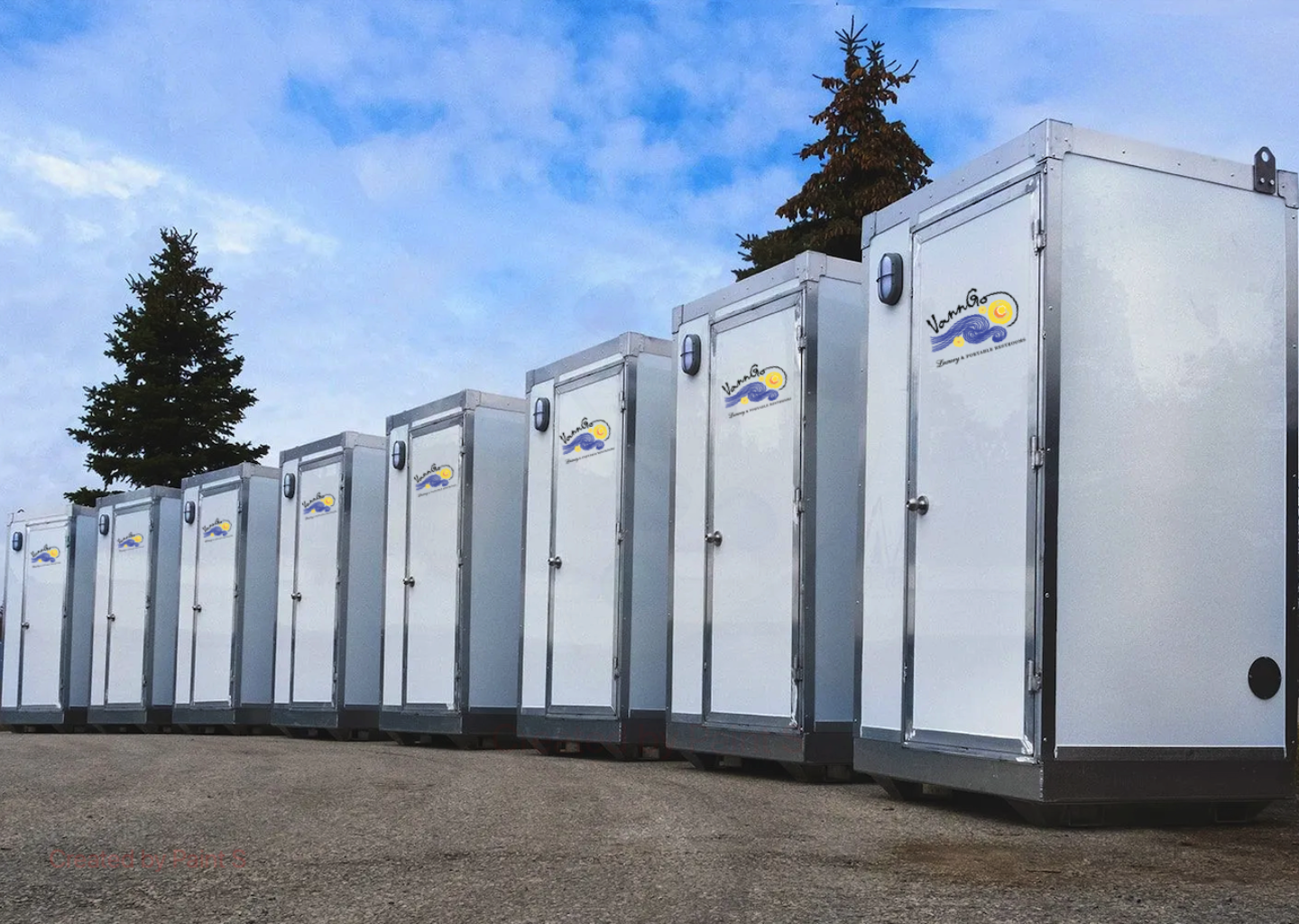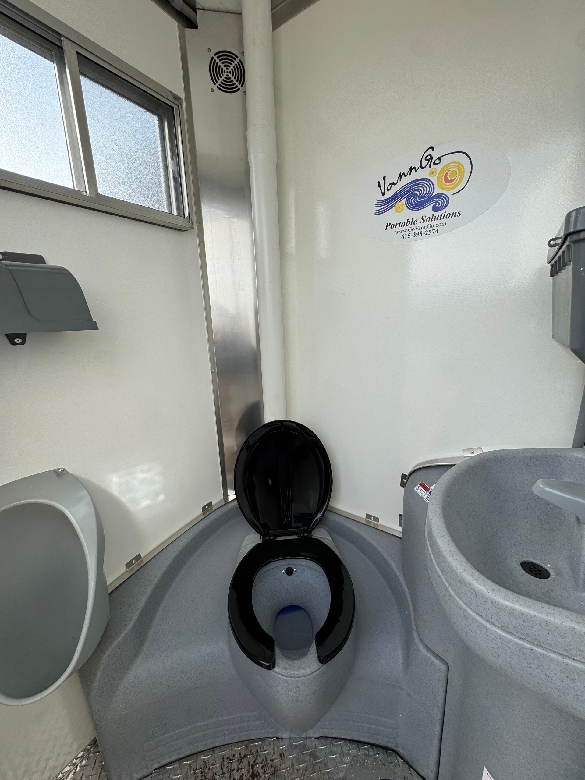 Our modular porta potty pod-style restrooms come equipped with a flushing toilet, hand-washing sink, hot water, air conditioning, heating, winter heat protection, premium aluminum and composite interiors, optional climate control, and all the amenities you'd expect in a permanent restroom facility. VannGo's VIP Bathroom Pods are proudly made in the United States with readily available parts, designed to withstand years of heavy use and harsh elements, including complete wash-down of the interior walls without risk of rust or delamination. For times of the year when temperatures are mild, we also offer restroom pods that run on solar and battery power, eliminating the need for external power sources.